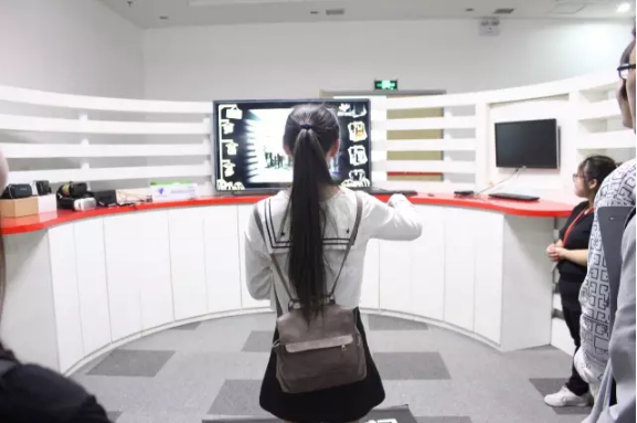 在云和数据技术体验中心,同学们争先恐后地体验了云和自主研发的虚拟试衣间和瓷器工坊项目以及VR游戏,对于这些在校期间从未体验过的尖端IT科技,同学们都表示惊呆了。