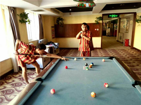 泡舒服了,打个台球,健个身,这销魂的姿势,也没谁了~~中午更有各种美食等你,这赶脚,爽!