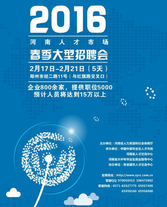 想进入高大上的云和数据公司,小伙伴们除了可以在智联招聘、前程无忧、赶集网等数家主流招聘平台上提交简历外,还可以在2月17日-21日期间来到2016年河南人才市场春季大型招聘会上,面对面进行咨询报名。昨日,招聘大会正式拉开了帷幕,来自四面八方的求职者为梦而来,齐聚郑州,期待能抢到让自己梦想开花的好平台,蓝天、暖阳,见证着各路“英豪”的梦想起航。今年的招聘会又有哪些新亮点呢?小编细心帮大家总结了一下,快来看看吧。