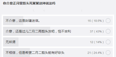 说到二月二的习俗,最被大家熟知的就是“二月二理头发”,但在说这个习俗之前,我相信小伙伴对这个话题更感兴趣,正月里剪头发到底死不死舅舅,网友们也都给出了答案: