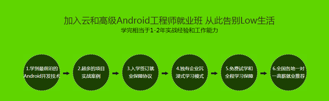 云和学院针对目前Android专业技术人才匮乏的问题推出了高级Android就业班,课程设置以移动互联网行业企业中的实际应用需求为基础,从实际案例出发,讲解Android基础开发知识,开发环境,调试,UI技术和程序界面控件,移动存储sqllite等技术。在高级阶段主要讲解高级API的使用,包括常见的Android地图及GPS定位应用,以及Android视频API的使用,课程案例丰富,培训期间需要完成大型Android实战项目。目前报名情况火爆,三月份班仅剩3个座位,且毕业学员已全部就业,平均月薪高达8000+。